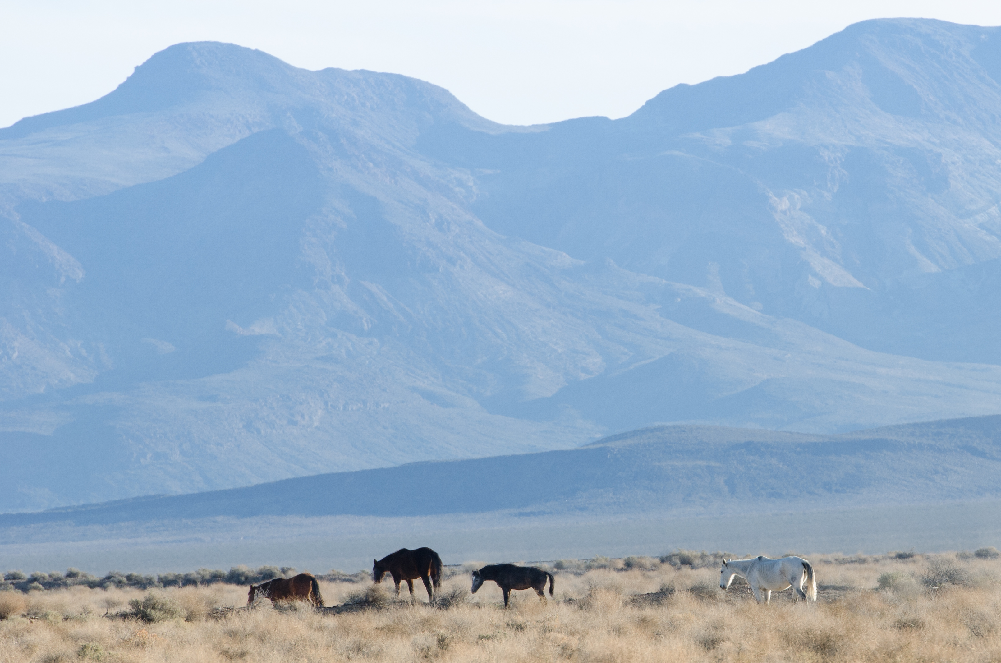 Cavalli bradi nel deserto della Death Valley. Pare che molti cavalli selvaggi vengano uccisi dagli allevatori per proteggere la poca acqua messa a disposizione degli allevamenti.