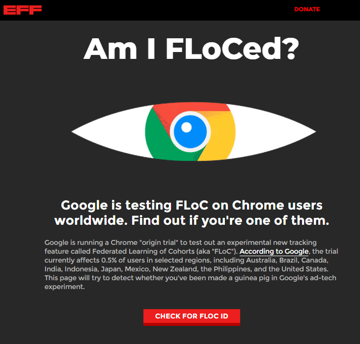 Users selected for the FLoC beta test are not being notifies by Google. There is a simple way to find out if you have been selected as Guinea pig by Google. EEF, the Electronic Frontier Foundation, created an online page “Am I FloCed?” you can visit to verify if you are part of the FLoC experiment.