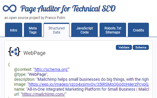 The Page Auditor is now available for free on the Google Chrome Web Store. You can easily install it with a couple of clicks. It’s a super safe app, validated and approved by Google. The project started a few months ago when I wrote a simple JavaScript snippet to analyze Structured Data: Exploring Structured Data With A Google Chrome Snippet