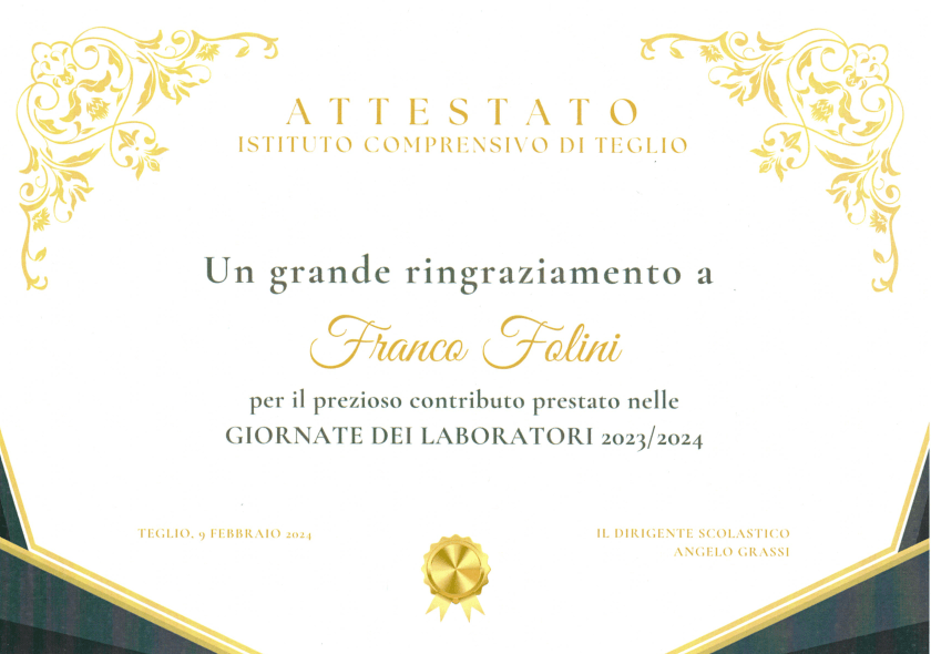 Il 3 febbraio 2024, ho tenuto due lezioni di due ore ciascuna per due gruppi di ragazzi delle Scuole Media dell’Istituto Comprensivo di Tresenda in comune di Teglio, Sondrio. La classe si è svolta nell’ambito del progetto Giornate dei Laboratori, edizione 2023/2024.