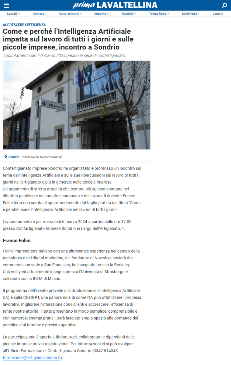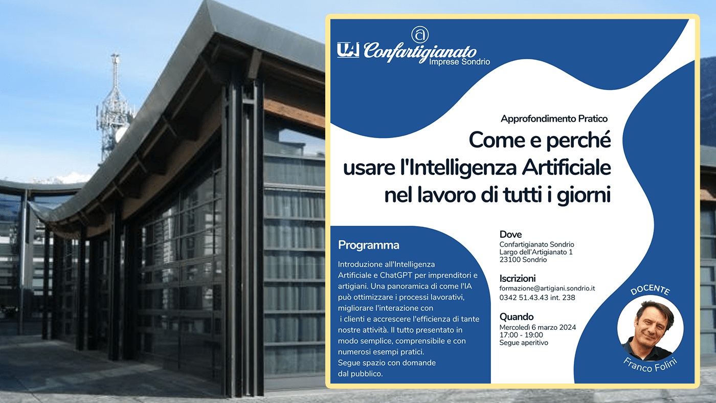 Corso di intelligenza artificiale tenuto il 6 marzo 2024 presso ConfArtigianato di Sondrio.