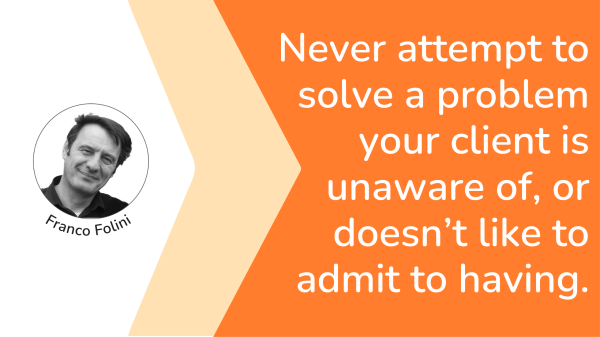 Never attempt to solve a problem your client is unaware of or doesn’t want to admit to having.